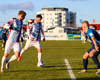 Adam Ægir finnur Rúnar í svæði úti til vinstri, Rúnar reynir fyrirgjöf en af varnarmanni og afturfyrir