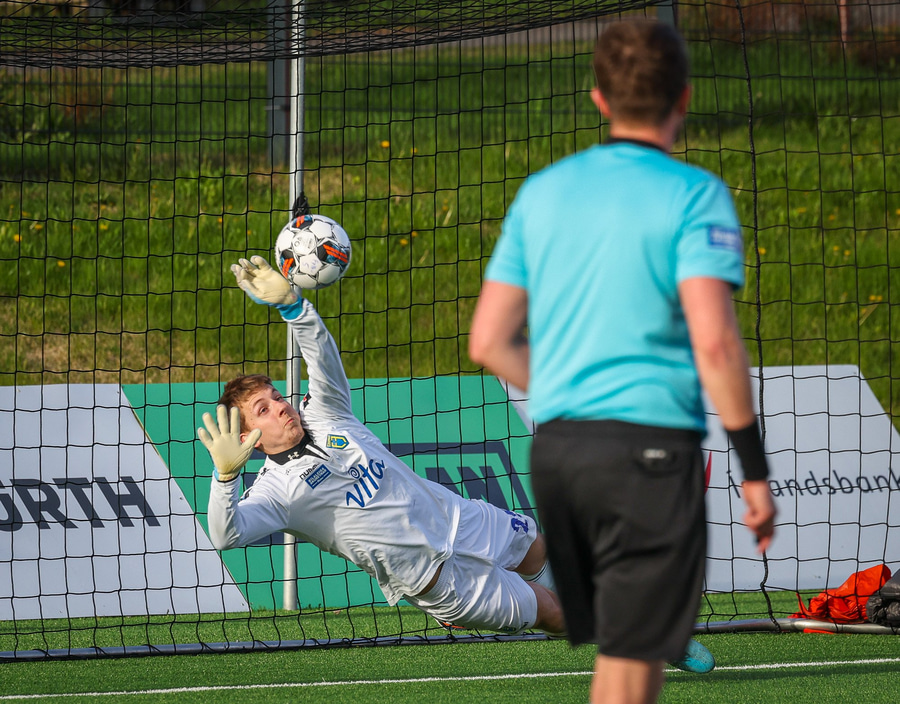 Hákon Ingi setur vítið á mitt markið. Öruggt.