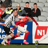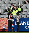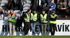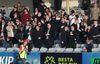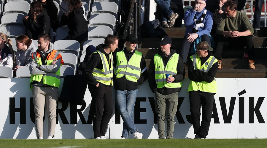 Stuðningsmenn KR alveg brjálaðir, vilja fá dæmda vítaspyrnu en fá hana ekki.