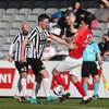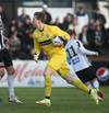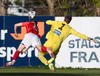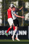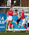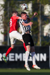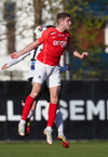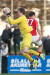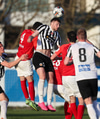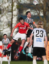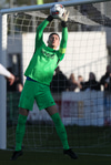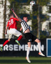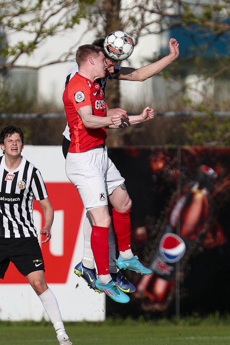 Hann lyftir boltanum á fjær þar sem Þorsteinn rís hæst og stangar hann í netið.