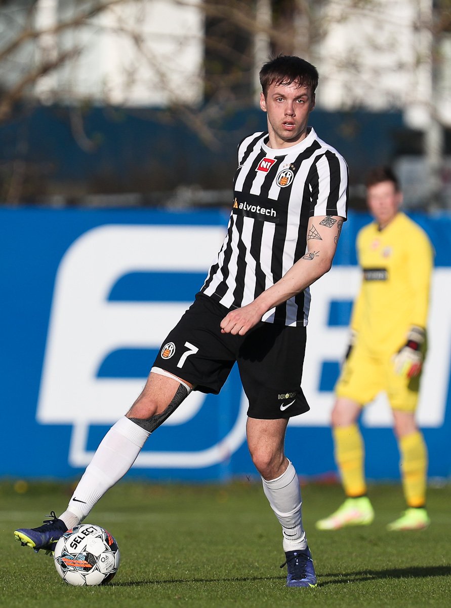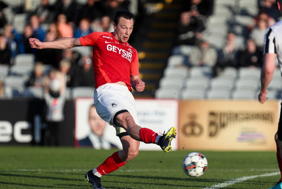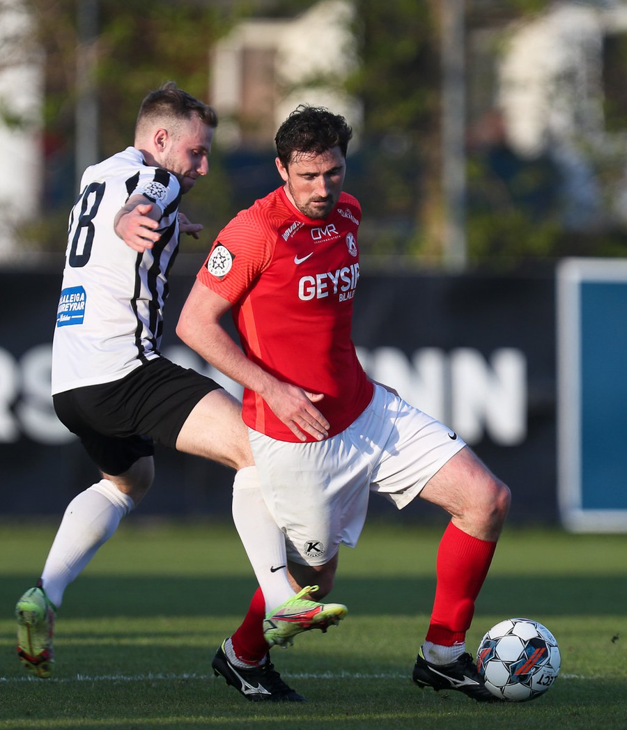 Rúnar setur hann láan inn í teig þar sem Dani Hatakka nær skotinu en það fer í varnarmann.