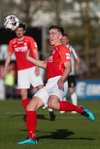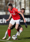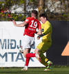 Þeir spila vel á milli sín á hægri kantinum og lauma Adam Ægi inn í teig þar sem hann tekur skot en það fer framhjá.