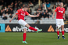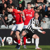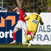 Atli setur hann stuttan á Aron sem er komin inná en skotið framhjá.