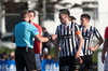 Lögregluvarðstjórinn Pétur Guðmundsson dæmir leikinn í dag og er með þá Eðvarð Eðvarsson og Smára Stefánsson sér til aðstoðar á línunum. Elías Ingi Árnason er svo skiltadómari. Þórarinn Dúi Gunnarsson er eftirlitsmaður KSÍ sem fylgist með umgjörðinni og störfum dómara.