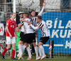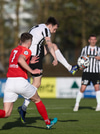 Atli setur boltann inn í teig og það er Hallur sem nær skotinu en það fer hátt yfir.