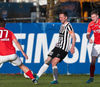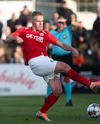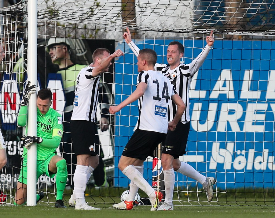 Kjartan Henry tekur á móti löngum bolta og er sloppinn frá vörn gestana. Hann setur hann svo þvert yfir teiginn á Stefán sem er í dauðafæri en hann skýtur framhjá!