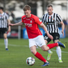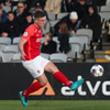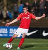 Atli fær boltan á hægri kantinum og rennir honum til baka á Hall sem er í fullt af plássi.