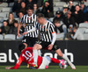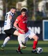 Adam Ægir nælir í aukaspyrnu í fínni fyrirgjafastöðu.
