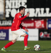 Kennie með fastan bolta fyrir sem hefði getað verið hættulegur ef það hefði verið samherji á réttum stað en í staðinn grípur Sindri boltann.