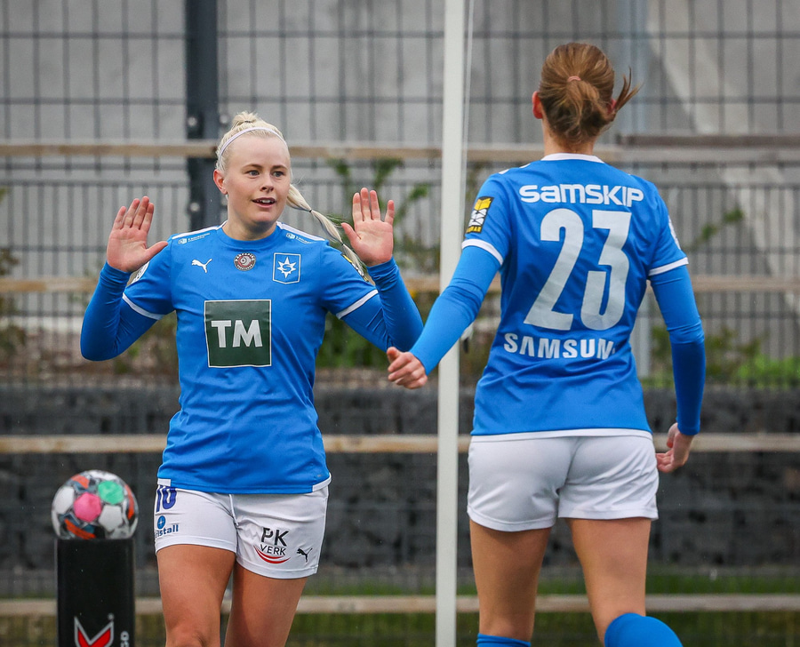 Jade spilar góðan þríhyrning við Önnu og sendir fasta sendingu fyrir markið og Sigrún var þar mætt að pota boltanum inn.