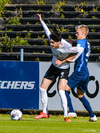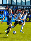 Vuk með boltann úti til vinstri, setur boltann með jörðinni inn á nærstöng þar sem Matti er fyrstur á hann í þéttum pakka og nr að skófla honum af harðfylgi yfir línunna af stuttu færi.