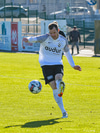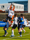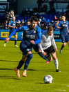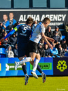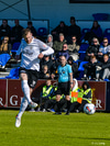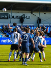 Lennon spyrnir en Nacho skallar beint aftur í horn, Seinni spyrnan skölluð frá.