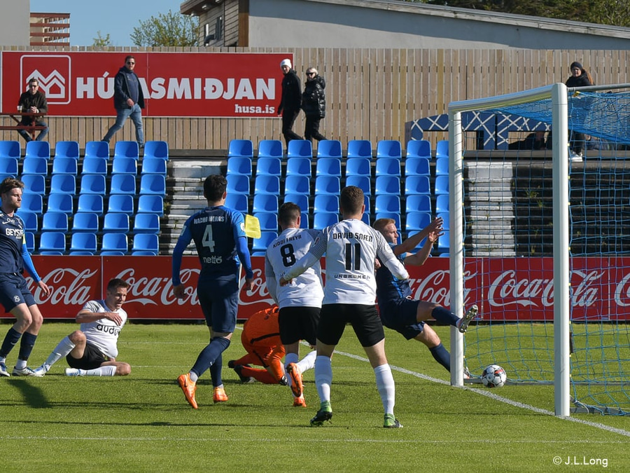 Góð horspyrna frá vinstri frá Ingimundi inn á nærstöng þar sem Hatakka er furðulega einn og skallar boltann í netið.