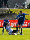 Keflvíkingar með hornspyrnu. Skallað beint afturfyrir í annað horn, og það þriðja.