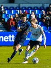 Patrik að vinna sig í fínt færi í teig FH en Finnur Orri kemst fyrir skot hans.