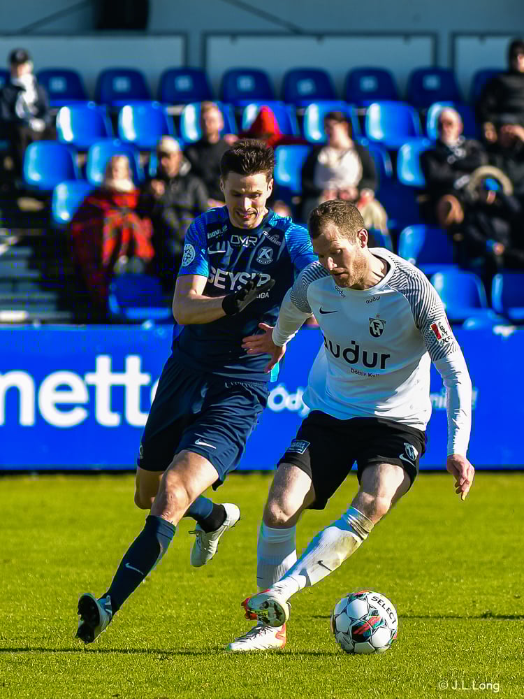 Baldur Logi í dauðafæri eftir sendingu frá Lennon en Sindri mætir aftur vel út og lokar á hann.