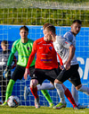 Vuk sendir fyrir og Gummi Kri hoppar en nær ekki skallanum í þetta sinn.