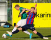 Eftir aukaspyrnu Blika steinliggur Binni Hlö inni í eigin vítateig. viðrist hafa fengið högg. Jafnar sig og stendur á fætur