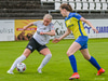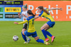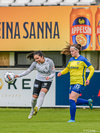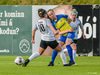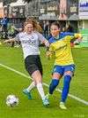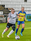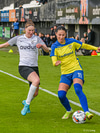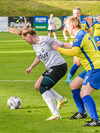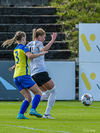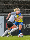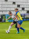 Elísa Lana í harðri baráttu við Ásu og kemst inn á teiginn, en Ása nær fyrr til boltans. Stúkan kallar eftir vítaspyrnu.