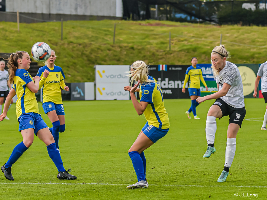 Elísa skýtur á markið og Lauren ver út í teiginn, þar sem Kristín er vel staðstett til þess að setja boltann þægilega í netið.