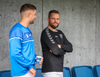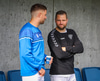 Hemmi Hreiðars og hundtryggi aðstoðarmaðurinn Heimir HallgrÃmsson skoða nýja gervigrasið à Úlfarsárdal.