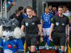 Dr. Villi Alvar fjórði dómari tekur upp skiltið og gefur merki um fjórar mínútur í uppbótartíma.