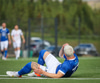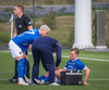 Alex Freyr fékk öxlina á Indriða í andlitið og steinliggur eftir. Sjúkraþjálfararnir hlaupa inn.