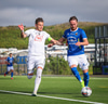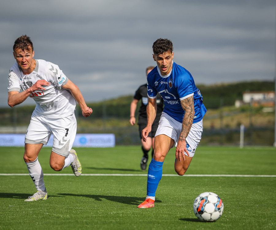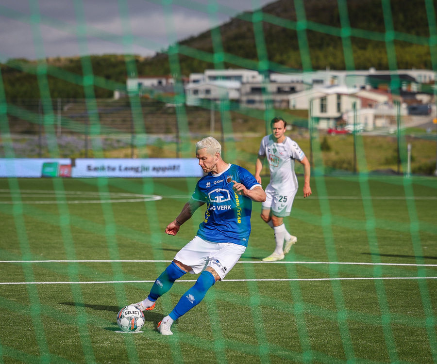 Fred reynir að lauma boltanum á Tryggva Snæ en aðeins of föst sending. Hugmyndin hinsvegar góð. Hrósum fyrir hana.