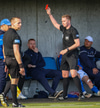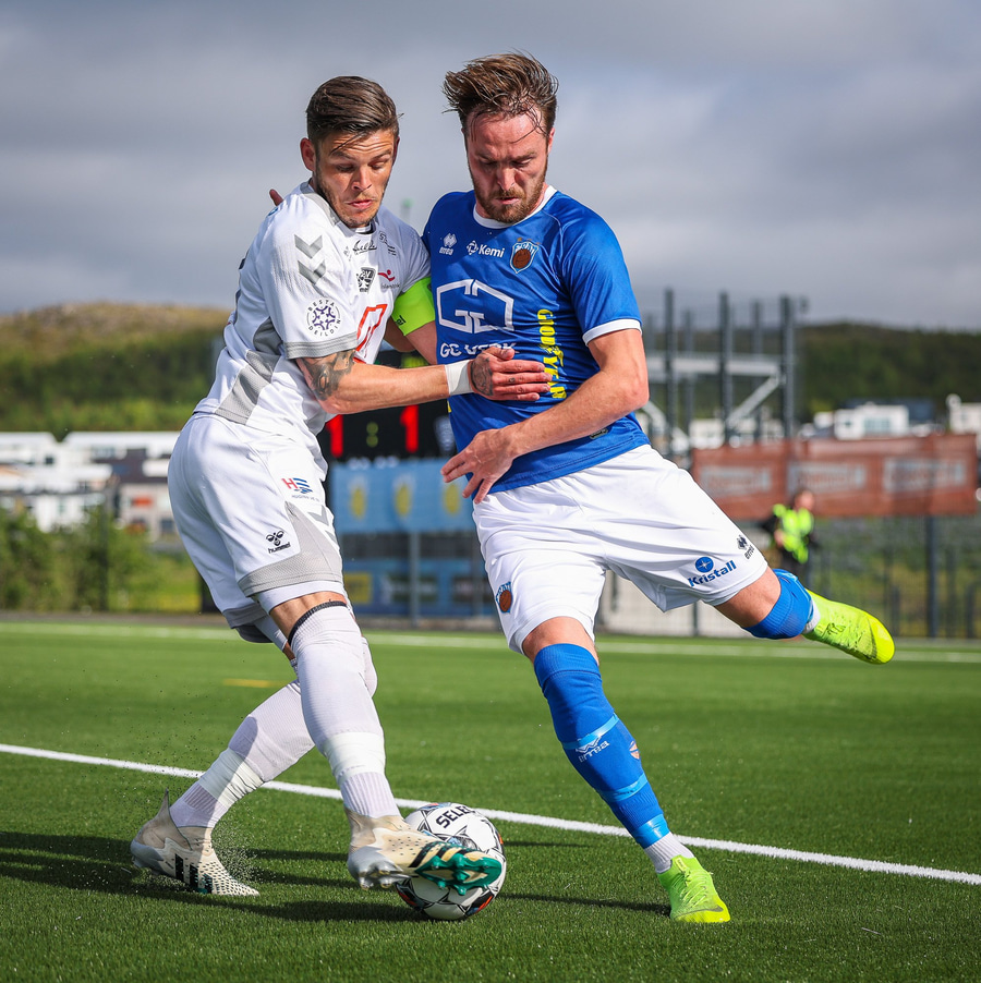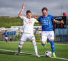 Fred vann boltann og var kominn á siglinguna þegar Sigurður Arnar henti sér í tæklinguna og braut á honum.