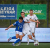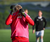Framarar hófu leik, þeir sækja í átt að nýju sundlauginni í fyrri hálfleik.