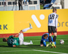 Atli Sigurjóns reynir skot frá miðju þar sem Anton Ari var nokkuð framarlega en skotið er ekki nógu gott!