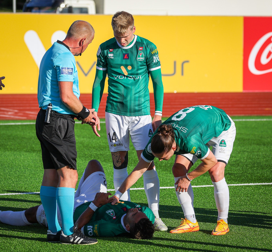 Ja hérna hér það er bara skrítið að Finnur Tómas sé ekki farinn út af, fer í 50/50 bolta gegn Gísla Eyjólfs en er bara aðeins of seinn í Gísla en fær ekki gult þar sem Finnur lenti sjálfur í höggi...