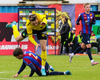 Brynjar Hlöðversson liggur eftir eftir samstuð við Steinar. Ég er ekki svo sannfærður um að þetta hafi verið víti.