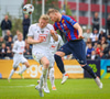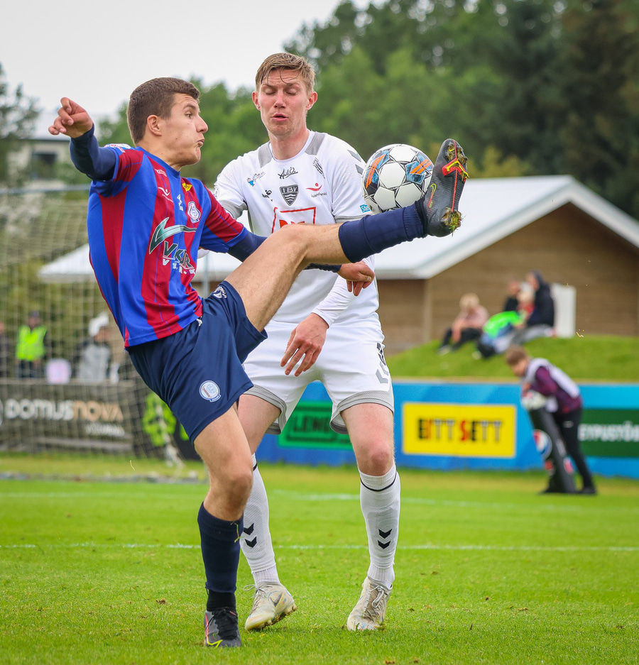 Kannski aðeins of há sending fyrir Atla sem þurfti svolítið að teygja sig í boltann..