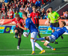 Logi Tómas fær boltann og finnur Helga Guðjóns sem kemur sér í einn á einn stöðu gegn varnarmanni Poznan og nær skoti en boltinn af varnarmanni og í horn.