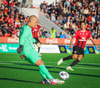 Viktor Örlygur fær boltann og finnur Pablo sem fær boltann fyrir utan teig og Pablo nær góðu skoti á markið en boltinn rétt framhjá.