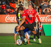Pedro Rebocho fær boltann og færir hann áfram á Jao Amaral sem hefur betur við Karl Friðleif og nær að komast í fyrirgjafa stöðu en Ekroth kemur boltanujm í burtu.