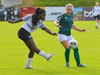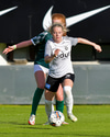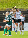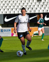 Kristin í góðu skallafæri inn á teignum en hittir boltann ekki nægilega vel. Boltinn fer út að hliðarlínuna en ekki í áttina að markinu eftir þennan skalla.
