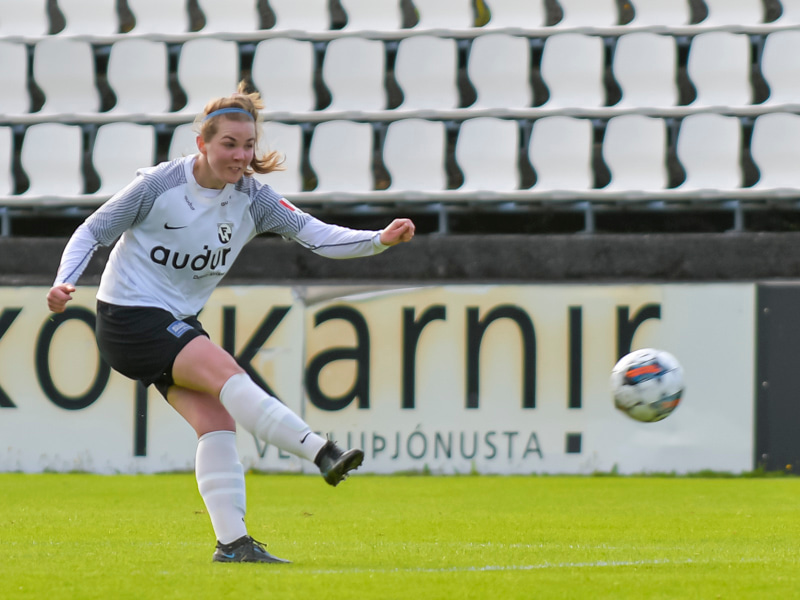 Augnablik í sjaldséðri sókn; Júlía Katrín sendir fyrir og þar er Díana Ásta mætt á nærstöngina en hún setur boltann fram hjá markinu.