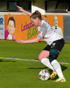 Kristin með skot af einhverjum 20 metrum sem smellur í slánni! Það leit út fyrir það að þetta skot væri á leiðinni inn.