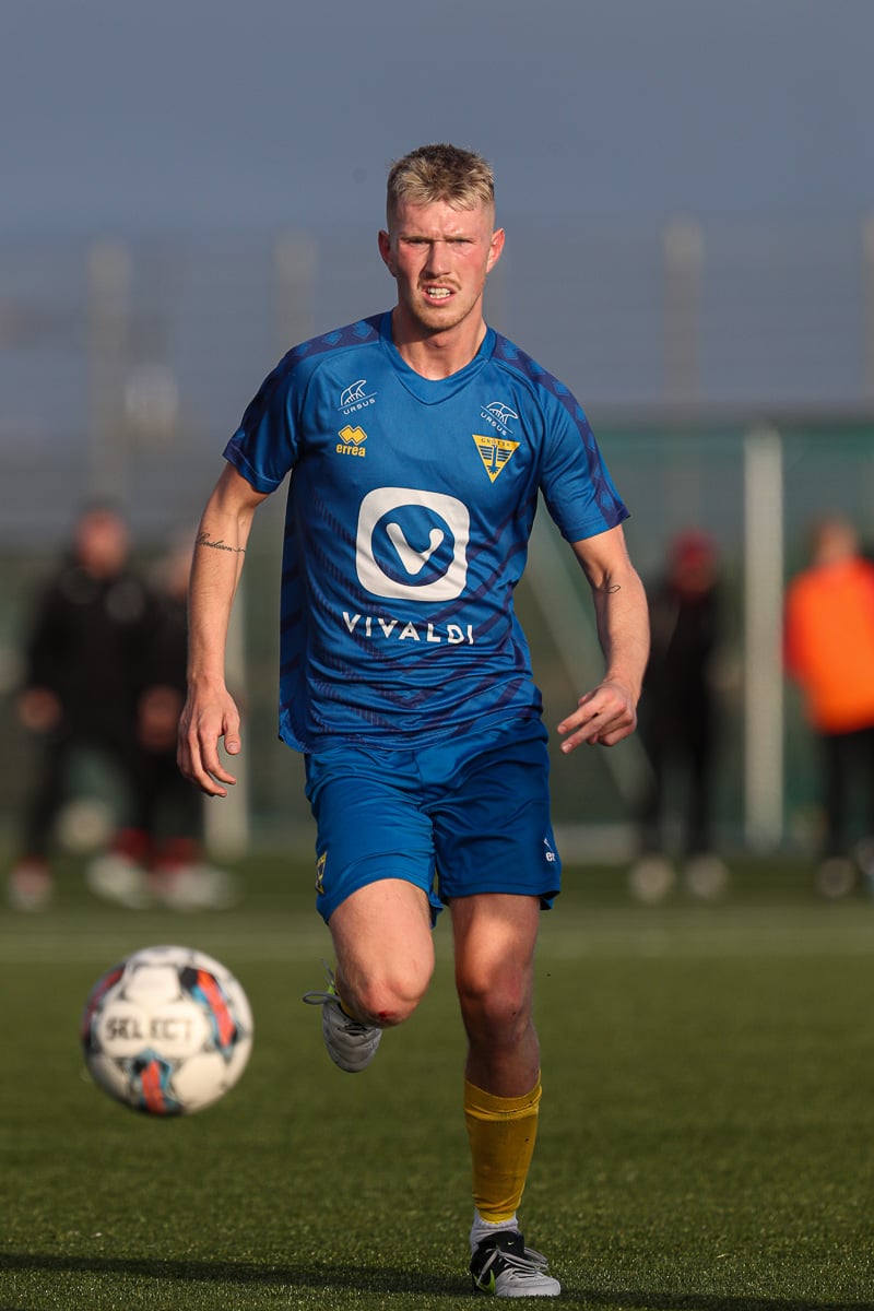 Gísli Martin með frábært skot fyrir utan teig sem Jón Ívan gerir mjög vel í að plaka framhjá markinu.