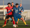Það kemur lúmskur bolti inn í teig frá vinstri kantinum og Kjartan tekur boltann viðstöðulaust á lofti en Esteve Pena gerir mjög vel í að verja boltan í horn.