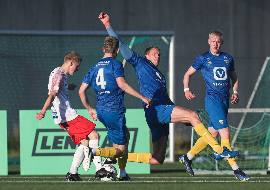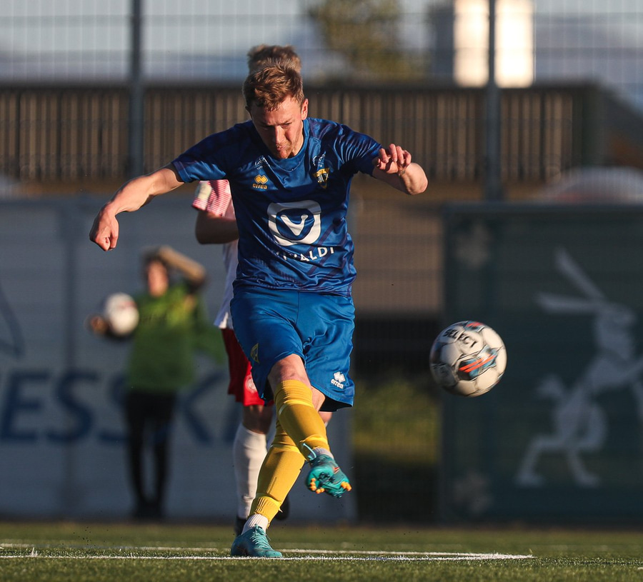 Kristófer Orri á hornspyrnu sem hann nær langt inn í teig og Elvar virðist ætla skalla boltann niður í jörðinna, en þetta verður að frábæru skallamarki sem fer, því miður fyrir Elvari, inn í hanns eigið net.