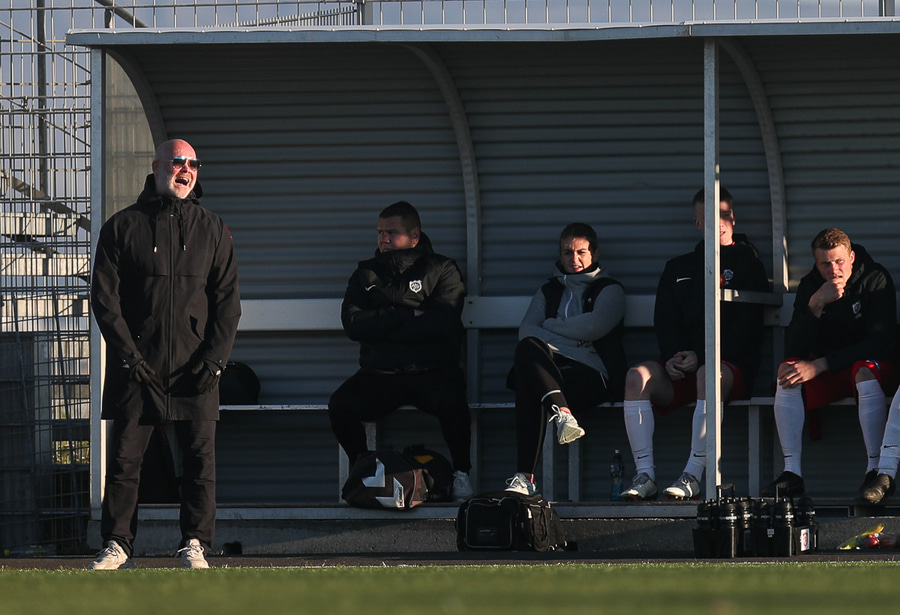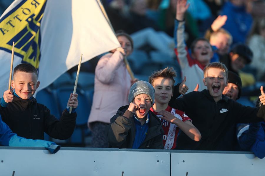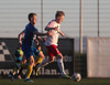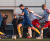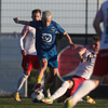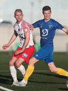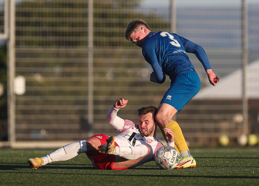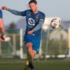 Harley Willar með flotta spyrnu að marki sem Jón Ívan teygjir sér vel í.