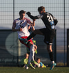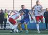 Boltinn lendir í teignum á Sigurð Marinó sem á skot sem fer yfir markið.
