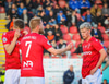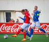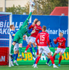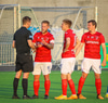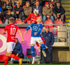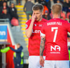 Tiago vinnur boltann af Aroni og þeir lenda eitthvað saman. Jóhann veitir þeim tiltal og segir: 'Ekki meira svona takk'.