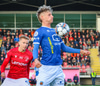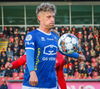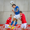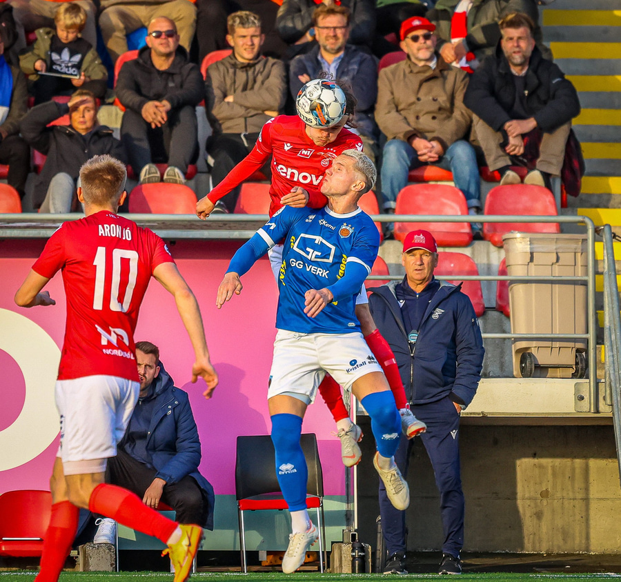 Tiago lætur vaða fyrir utan teig og boltinn er á leið upp í skeytin fjær. Frederik nær að koma fingri á boltann og þaðan fer hann í slána!