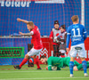 Tiago tók hornspyrnuna, boltinn fer einhvern veginn í gegnum pakkann og í Hlyn Atla á fjærstönginni. Hlynur var í baráttunni við Lasse Petry.