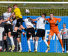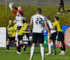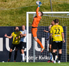Björn Daníel með hornspyrnuna en Árni Marinó nær að slaka hendi í boltann og fer hann í innkast.