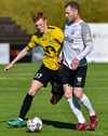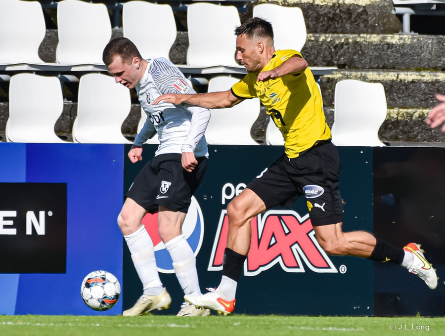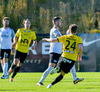 Hlynur Sævar með sendingu bara eitthvert. Fer beint á Oliver sem fer upp hægri kantinn. Hann leggur hann niður á Ástbjörn sem á ömurlega fyrirgjöf á engan.